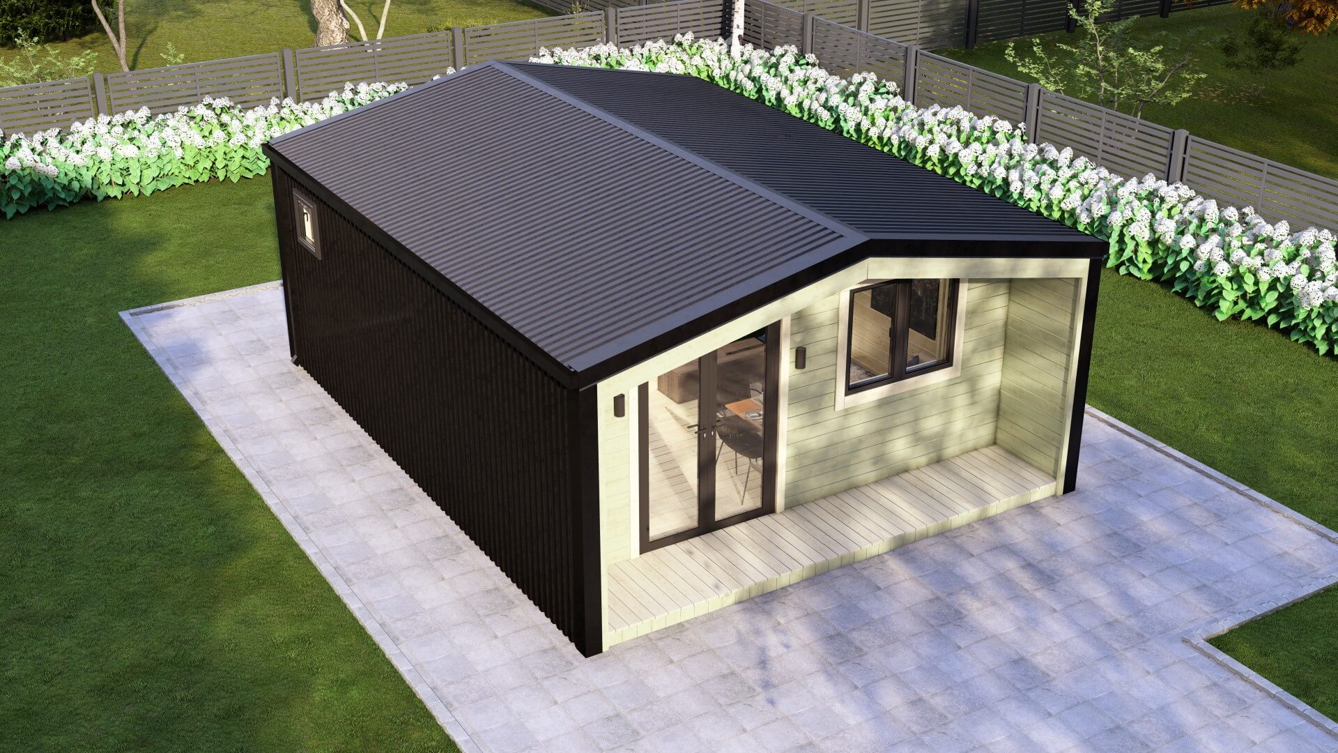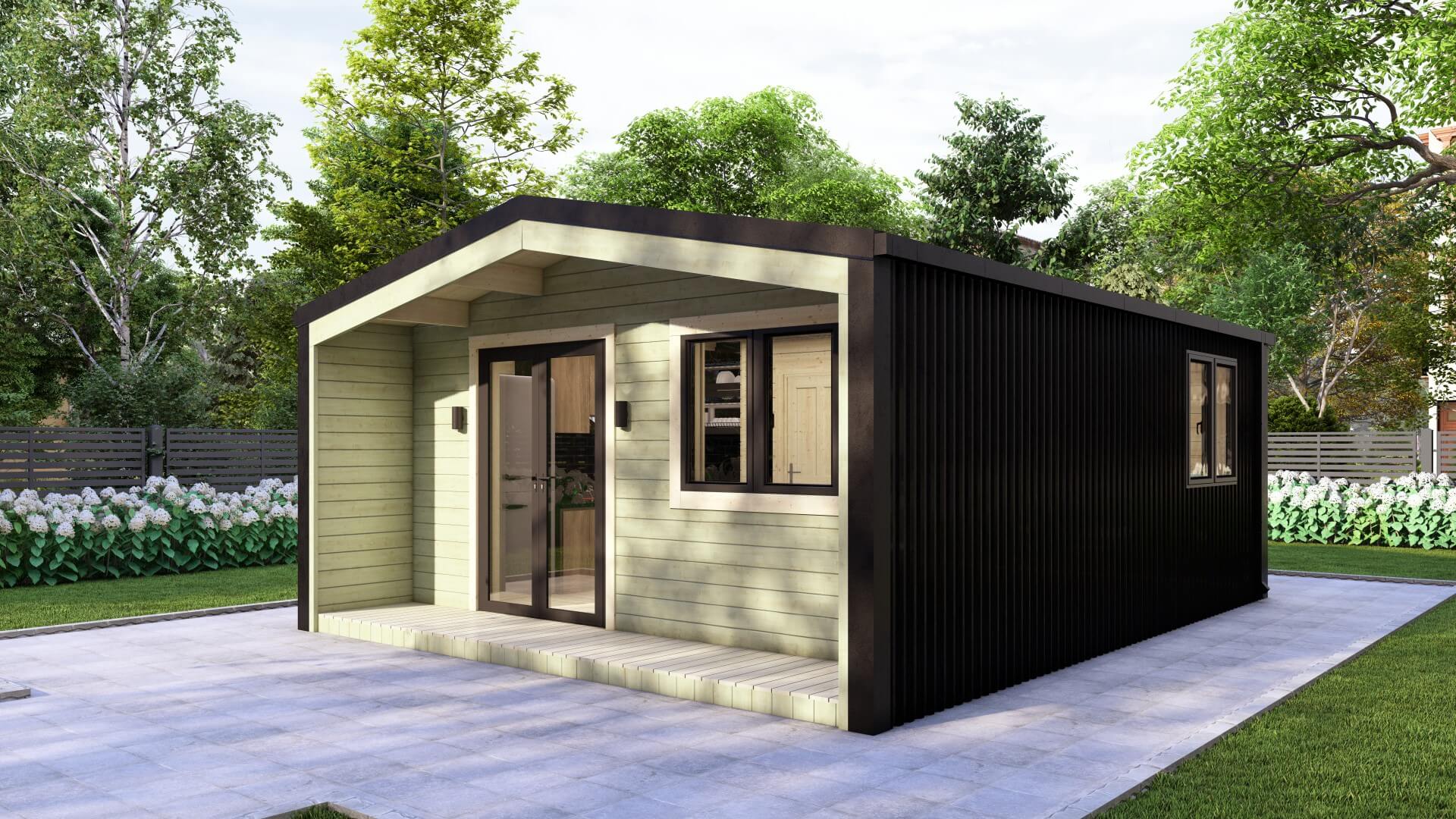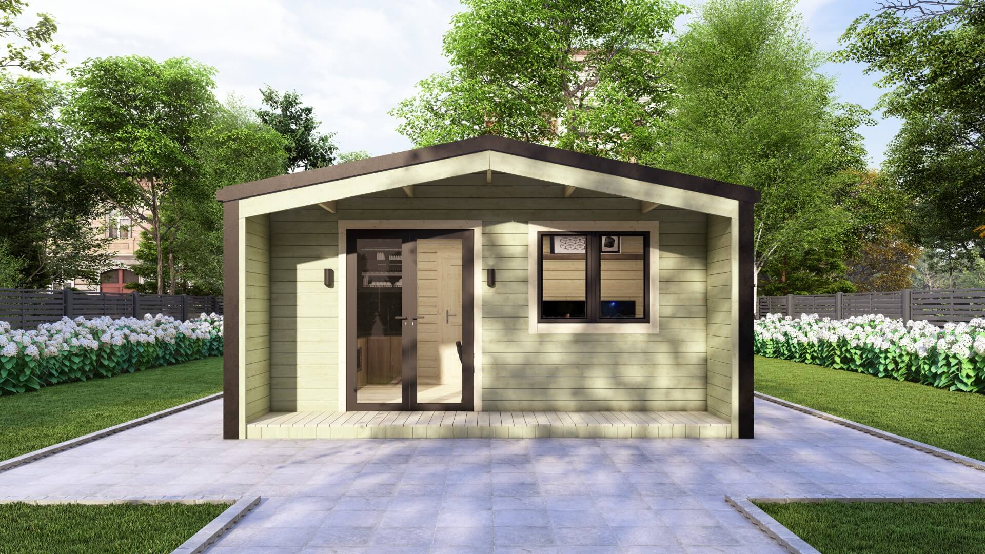 The Barn Style One Bed A2 log cabin is expertly designed for small-space living. Measuring 5m x 6.9m, it offers a well-planned internal layout without compromising on space. This cabin is similar to our One Bed A style but features an entrance on the left side, creating a narrower front-facing. If this door position doesn’t suit your needs, you can opt for the One Bed A style cabin.