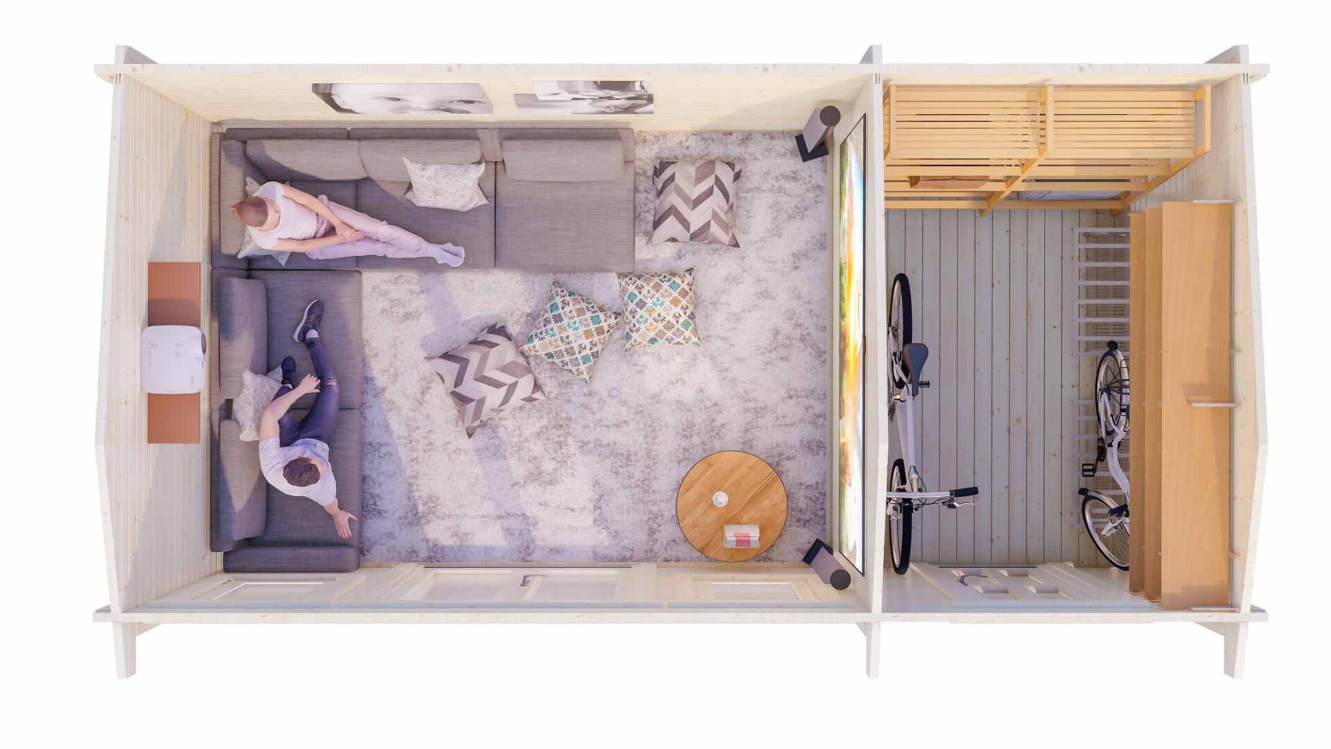 This Budget 13 Log Cabin is designed to be the perfect size for extra room at the back of your garden. The separate entrance to the storage area allows it to be used as a garden shed too. It’s two cabins in one!