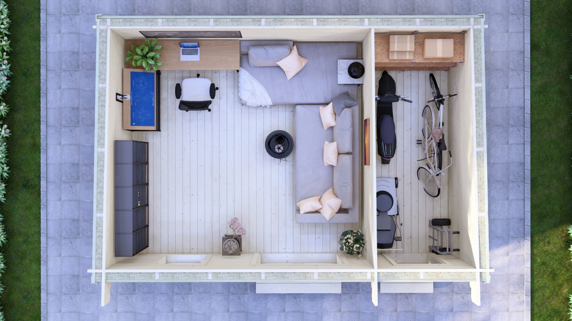 Have you always wanted a quiet corner to work from home or perhaps open your own small business, but don’t want to lose the storage space your garden shed provides? This cabin is the perfect solution for you. It features two rooms, with one being ideal for storage, so you can keep all your essentials organized while enjoying a dedicated workspace. With plenty of light from the extra tall window and fully glazed double doors with toughened glass, it offers all the space you need to work in a relaxed and peaceful environment. What more could you ask for?
