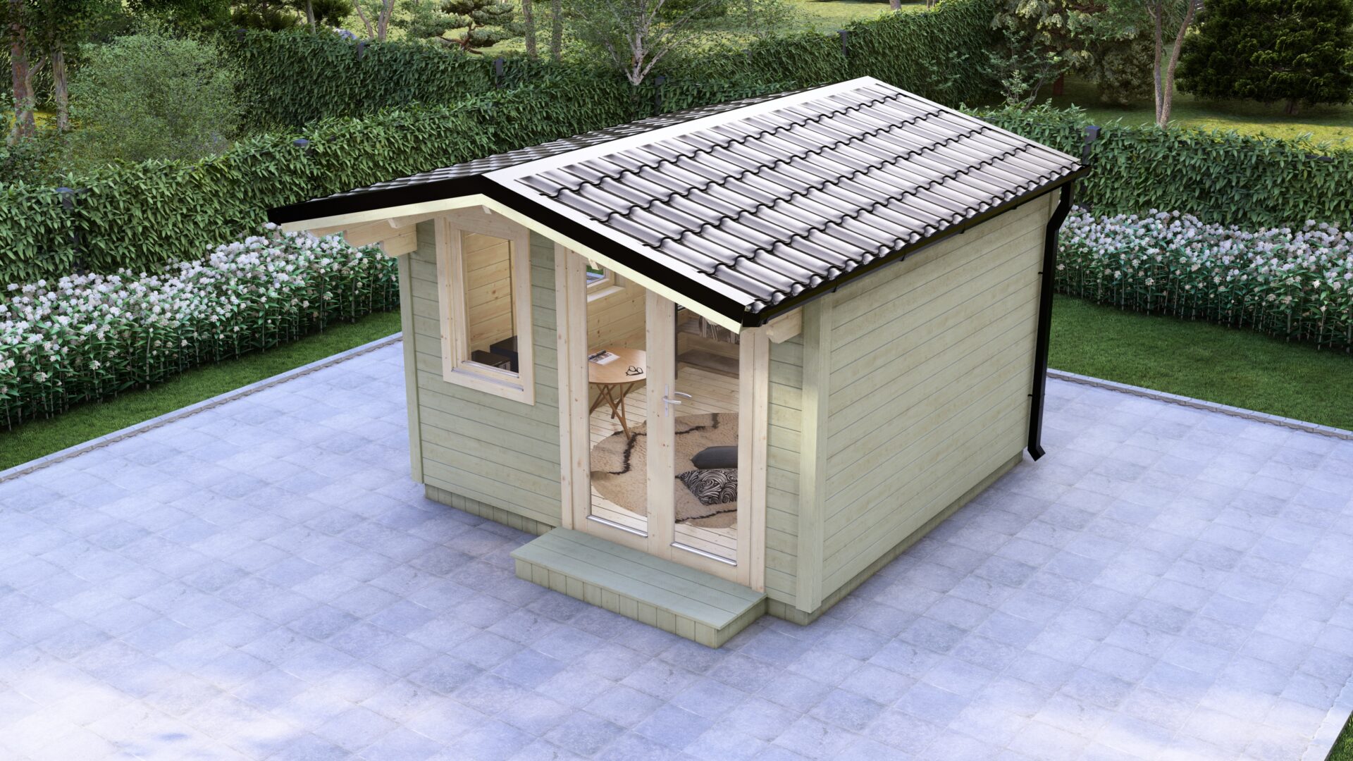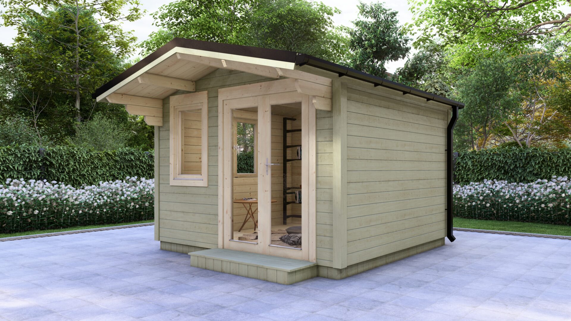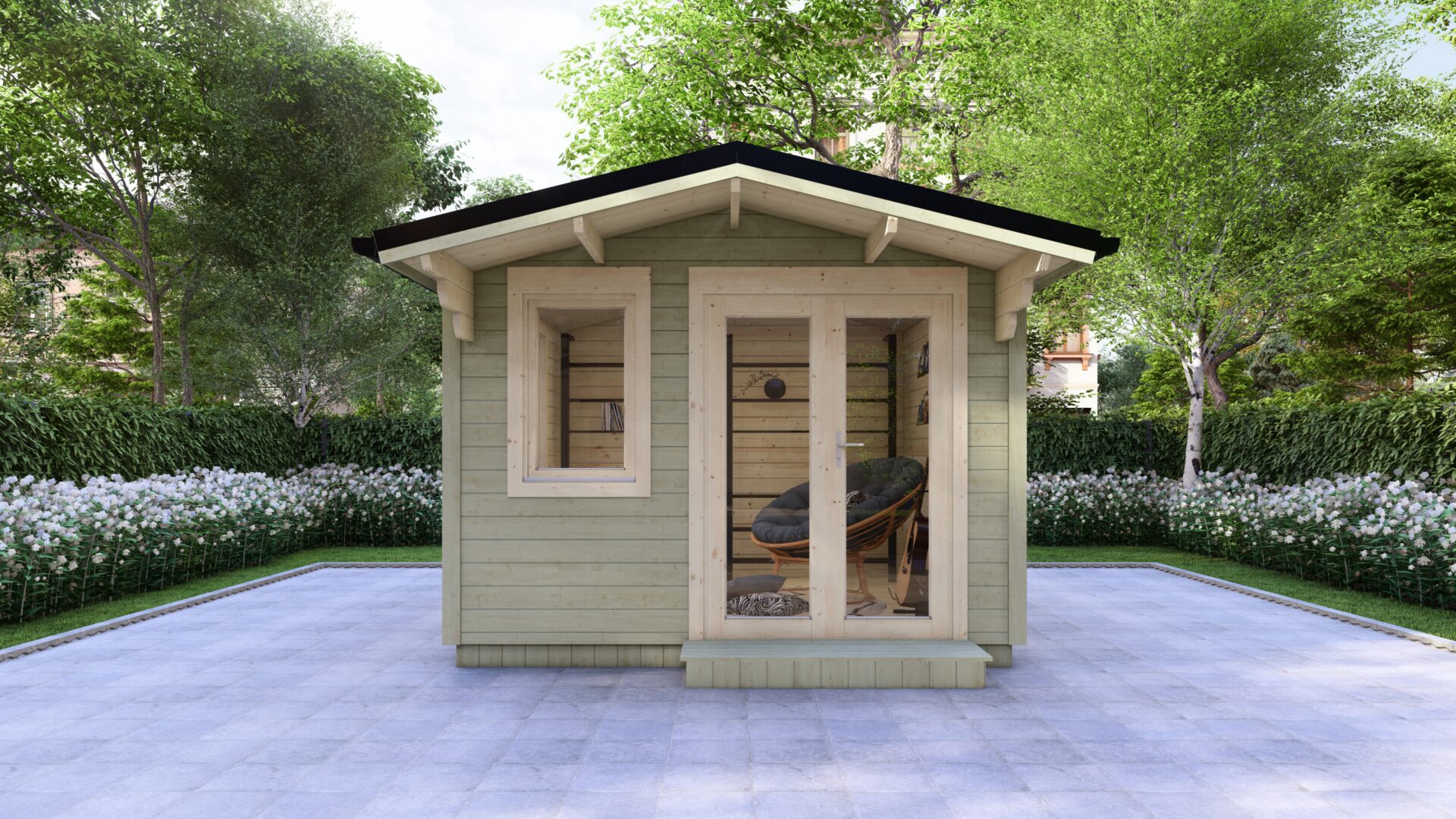 Made from sturdy timber, the Laois log cabin is both practical and aesthetically pleasing. The 900mm (3ft) overhang shelters your external doors and front window from the rain, while the pitched roof efficiently deflects rain to the sides. The Laois features one single window, one double window, and a large double door, allowing maximum natural light to flood the interior.