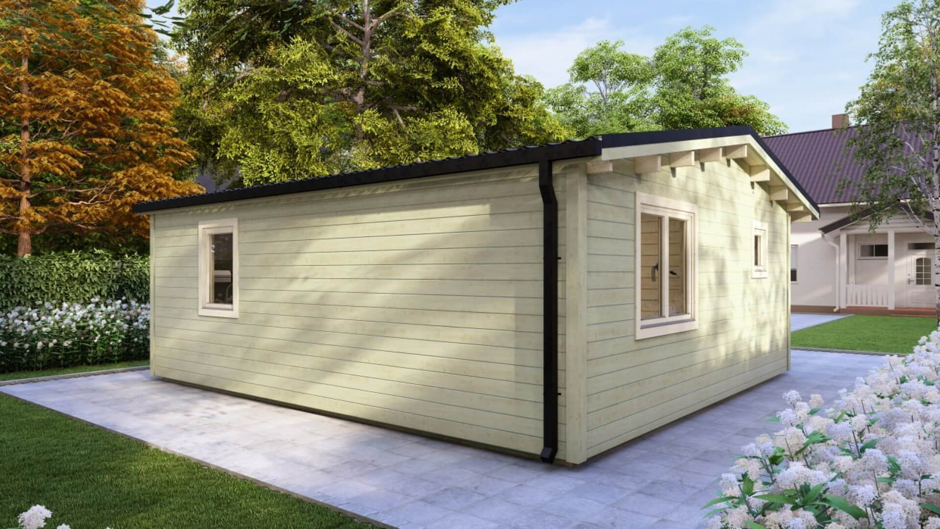 Constructed with high-quality materials, this log cabin ensures durability and energy efficiency, making it a practical choice for year-round living. The design incorporates large windows, allowing plenty of natural light to flood the interior.