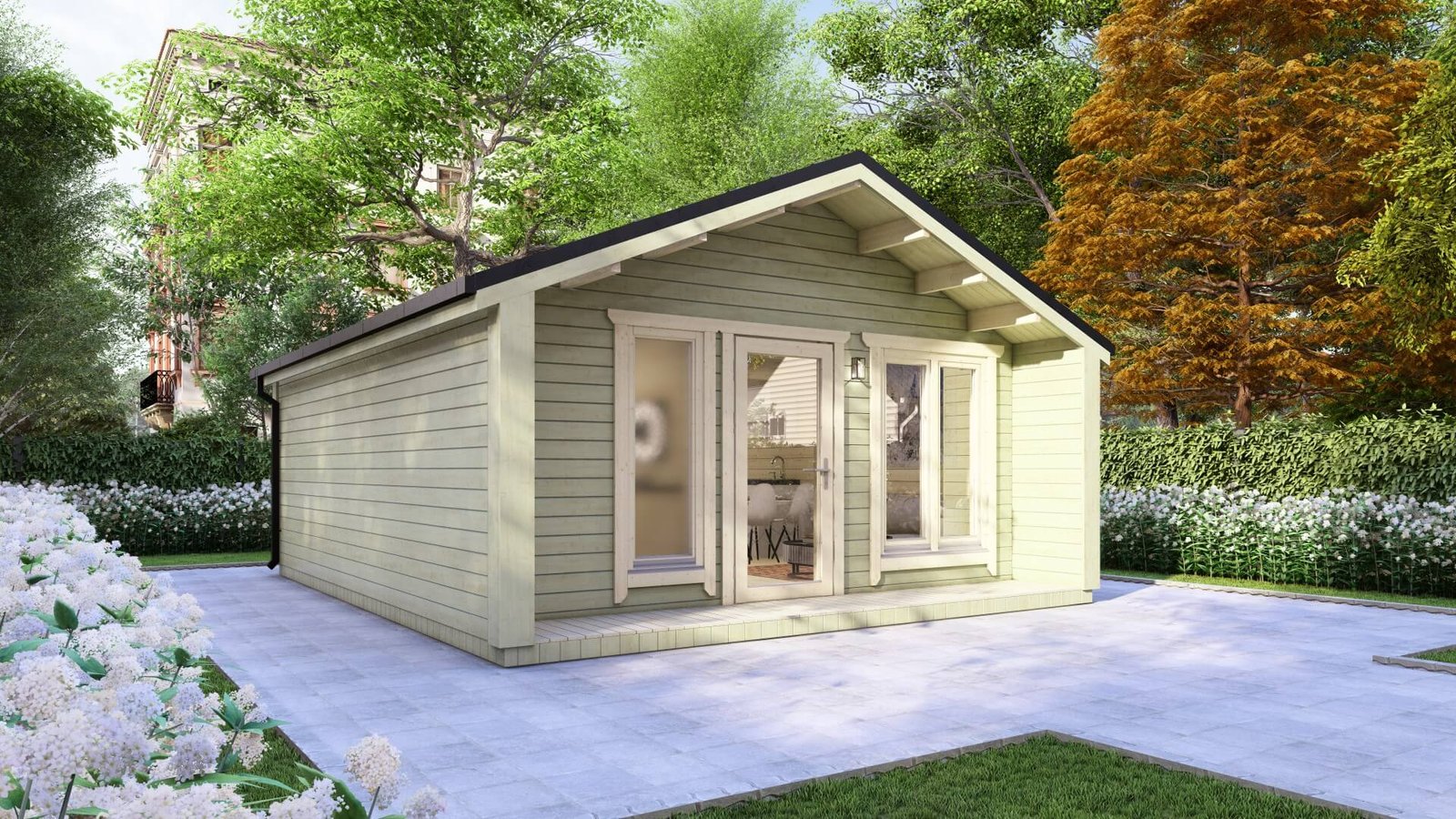 This cabin provides flexibility in style with a choice between our classic ship lap cladding or low-maintenance steel cladding. For added convenience, we can recommend contractors that can do electrical work, plumbing, and the installation of kitchen and bathroom units.