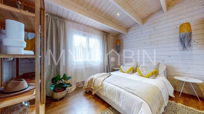 Our most popular 2-bed log cabin/log home model is the 2 bed Type A cabin. This design boasts an open-plan living/kitchen area, providing a spacious and inviting atmosphere for everyday living. Featuring two generously sized double bedrooms, this cabin offers ample space.